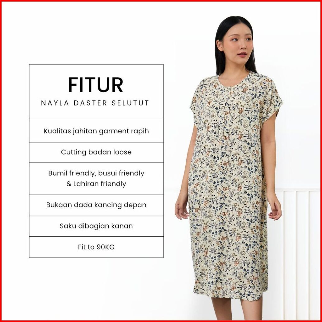 Dyd Label Nayla Daster Selutut Bumil Busui Friendly Bahan Rayon Premium Dress Kancing Nyaman Hypoallergenic All Size Fit