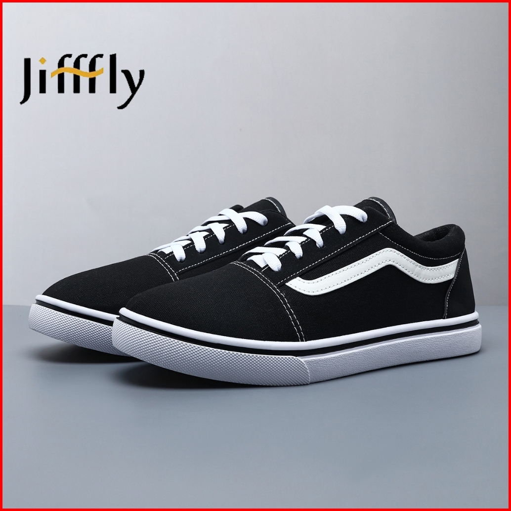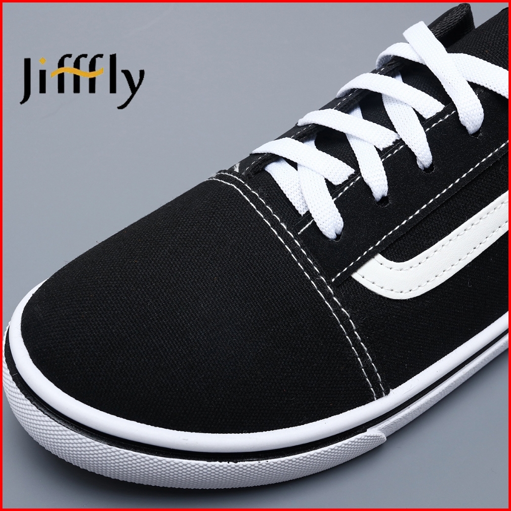 Jifffly Sepatu Sneakers Pria Wanita - Canvas Kasual Hitam Putih - Sepatu Harian Sekolah - Size 36-43