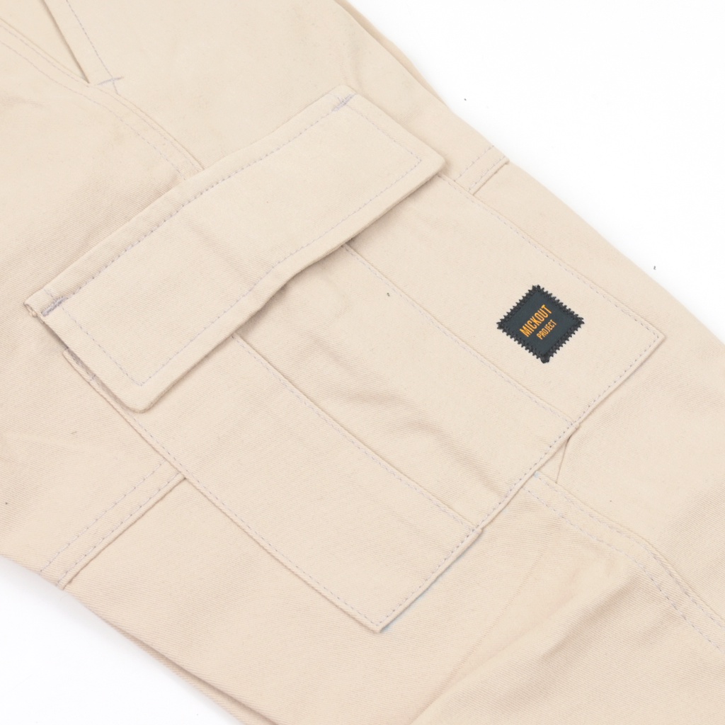Mickout Slava Cargo Pants - Celana Panjang Pria Rigid Cotton Straight Fit - Cream