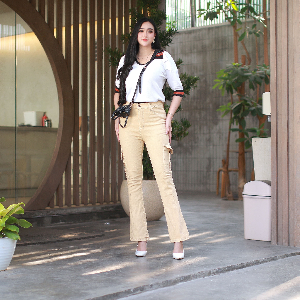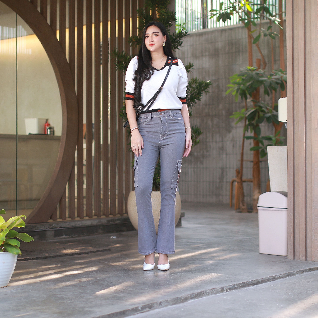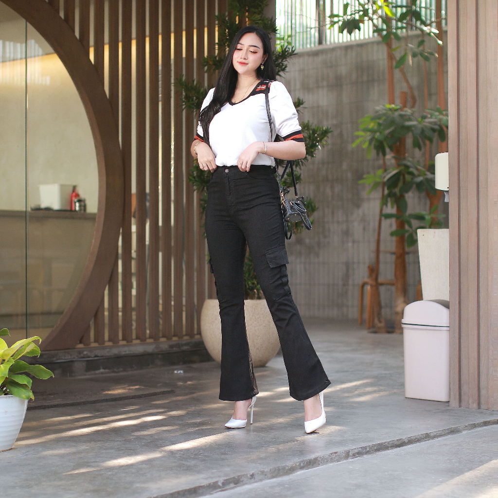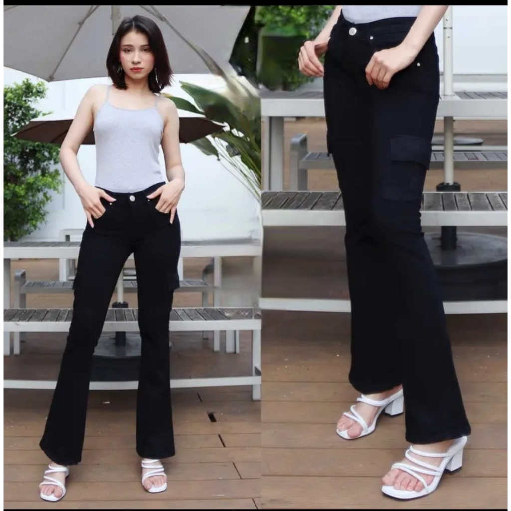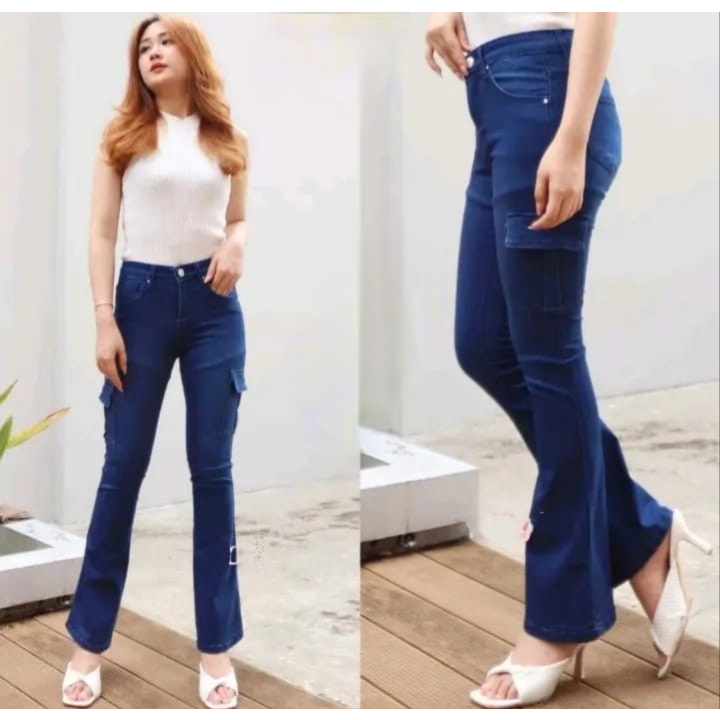 Celana Cargo Cutbray Stretch Highwaist Jeans Big Size Jumbo 27-42