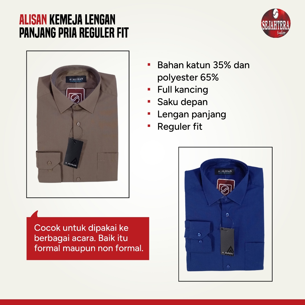 Kemeja Lengan Panjang Pria By Alisan Reguler Fit Warna