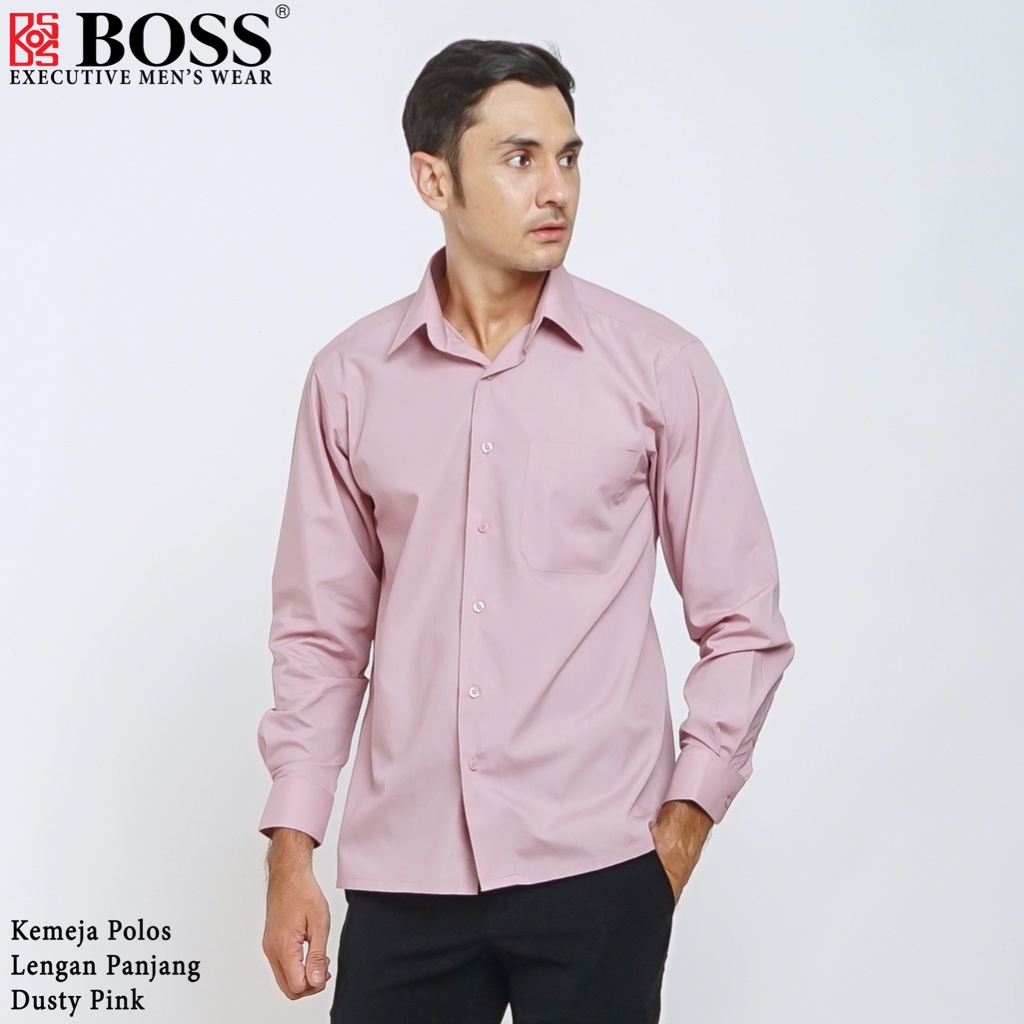 BOSS Kemeja Polos Pria Lengan Panjang Regular Fit Dusty Pink