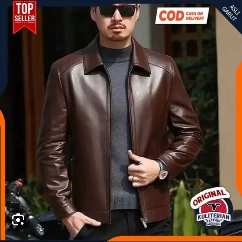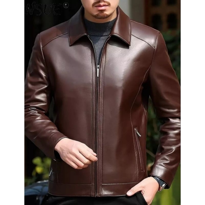 Jaket Kulit Asli Pria Model Kerah Kemeja Anti Api Anti Air New Elegant