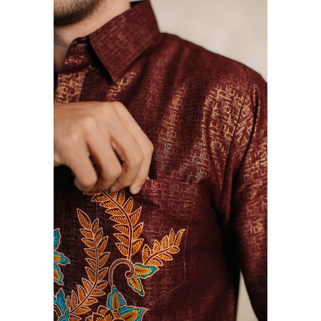 Adyatma Adhiwangsa Maroon Kemeja Batik Pria Furing Reguler Fit Lengan Panjang Katun Foil