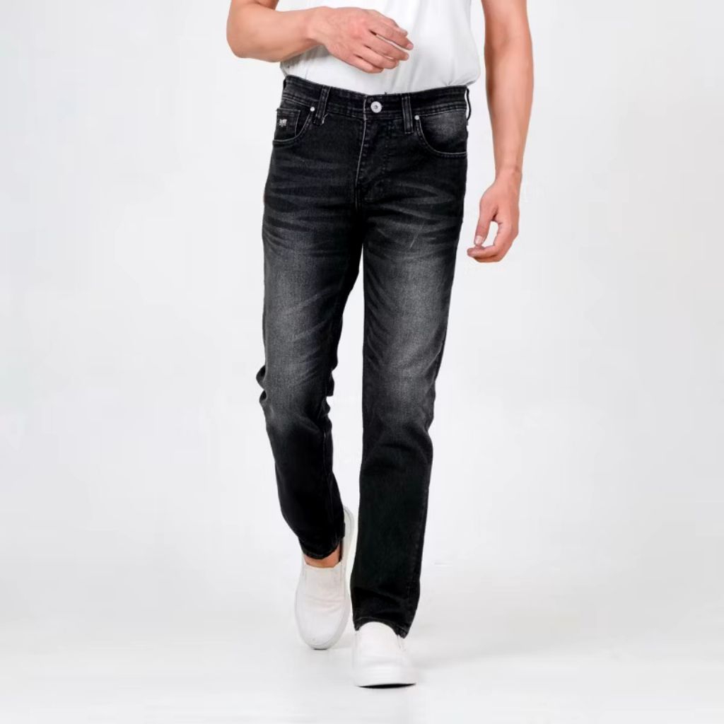 Celana Jeans Pria Slimfit Skinny Wisker Hitam Blackjazz Denim Strech