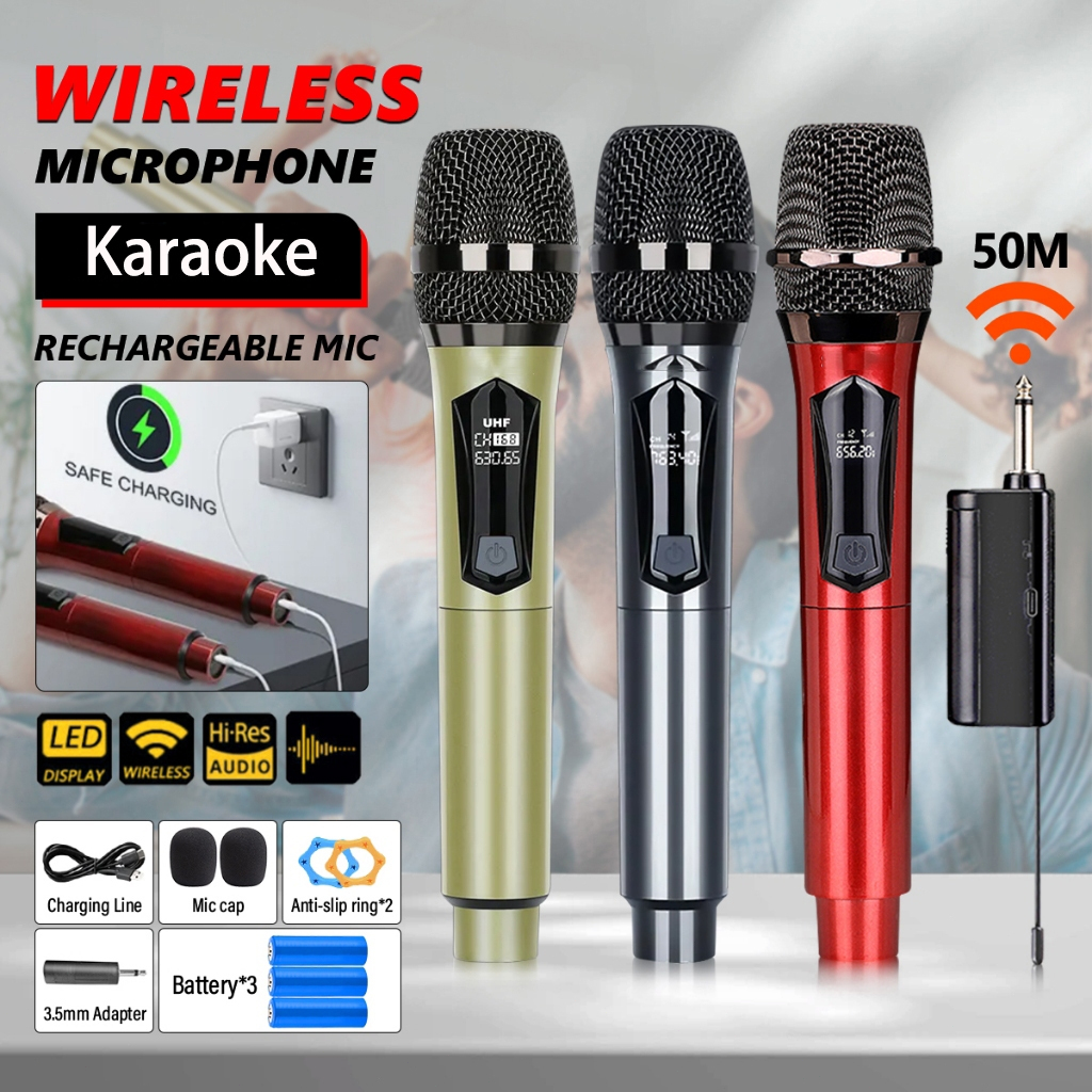 Mic Wireless Karaoke S302 Mic Tanpa Kabel UHF Mikrofon Genggam LED Digital Mikrofon Nirkabel Microphone Wireless