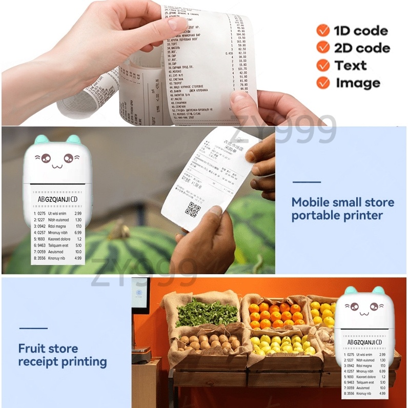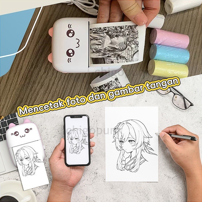 Alat Printer Bluetooth Mini Portable Label Printer Thermal Foto Memo Receipt Printer for Student