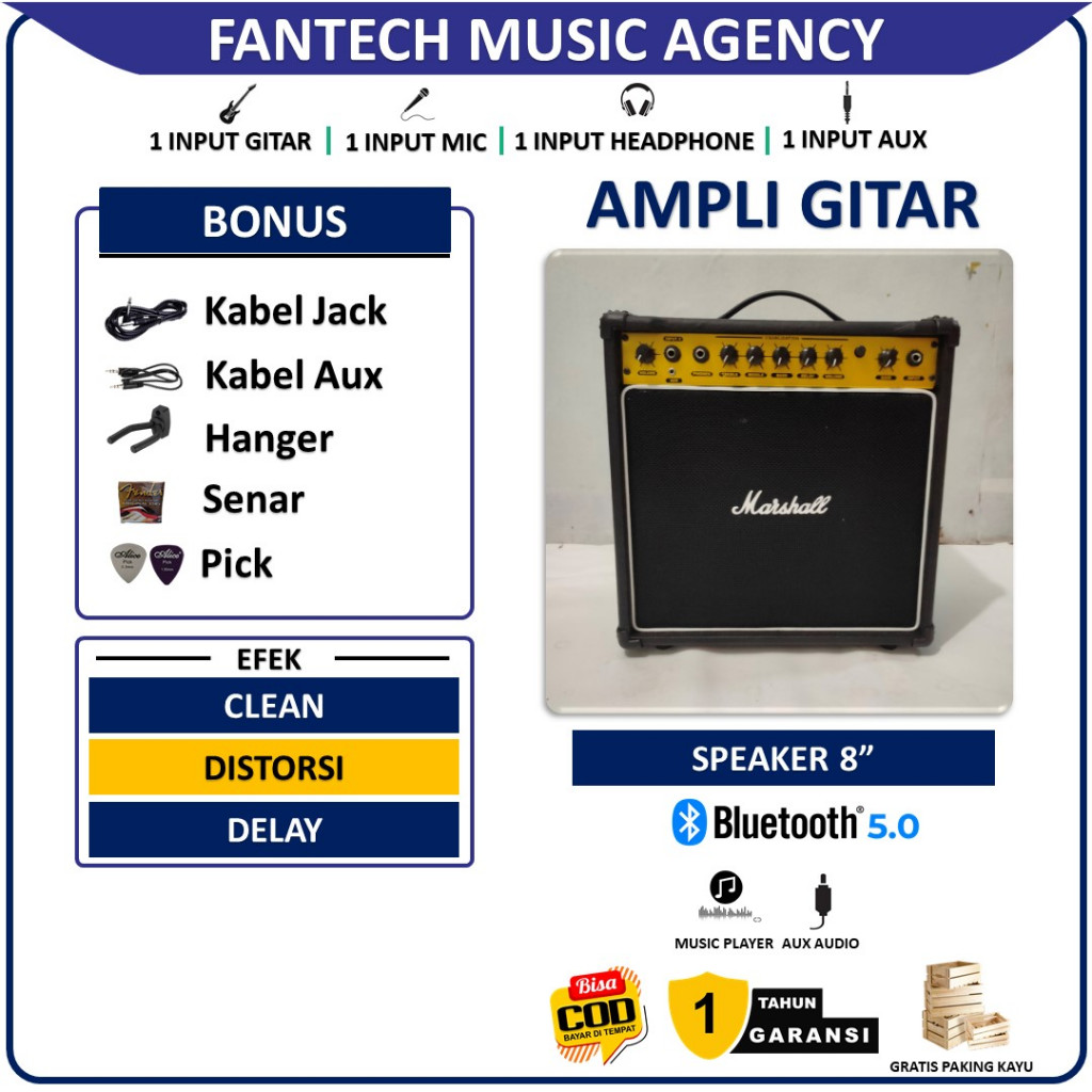 Ampli gitar & bass 8 inc 3 input plus bluetooth 5.0 bisa untuk karaoke efek distorsi,reverb, delay,chrous bergaransi