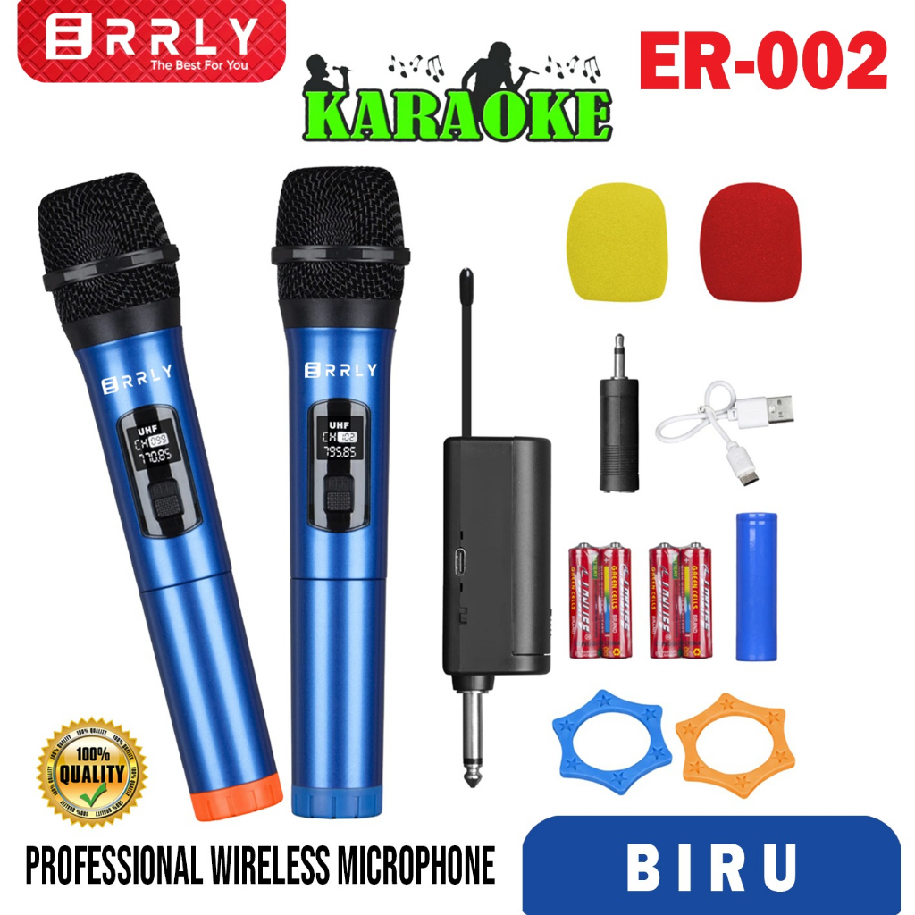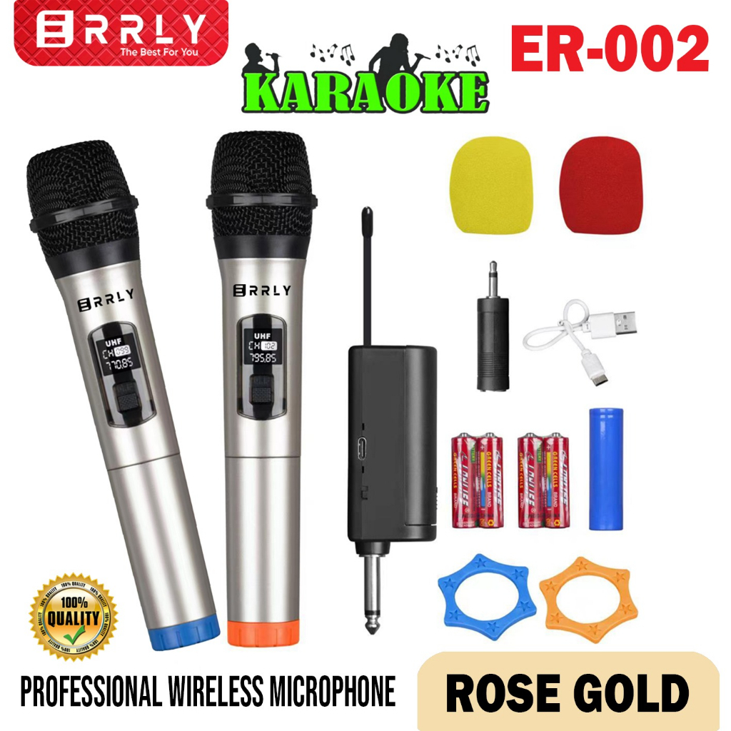 MICROPHONE WIRELESS ERRLY MIC-02 Double Digital LED Profesional MIKROFON ER-002 KARAOKE TANPA KABEL ISI 2 PICS Suara Dijamin Bagus bossku.