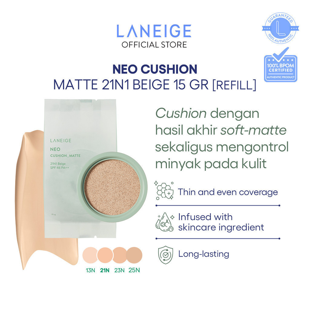 LANEIGE NEO Cushion Matte 21N1 Beige 15gr [REFILL] Glowing Mencerahkan Produk ASLI BPOM TERLARIS