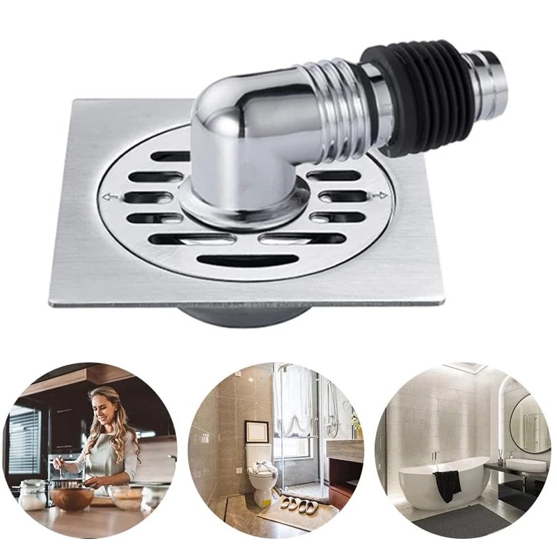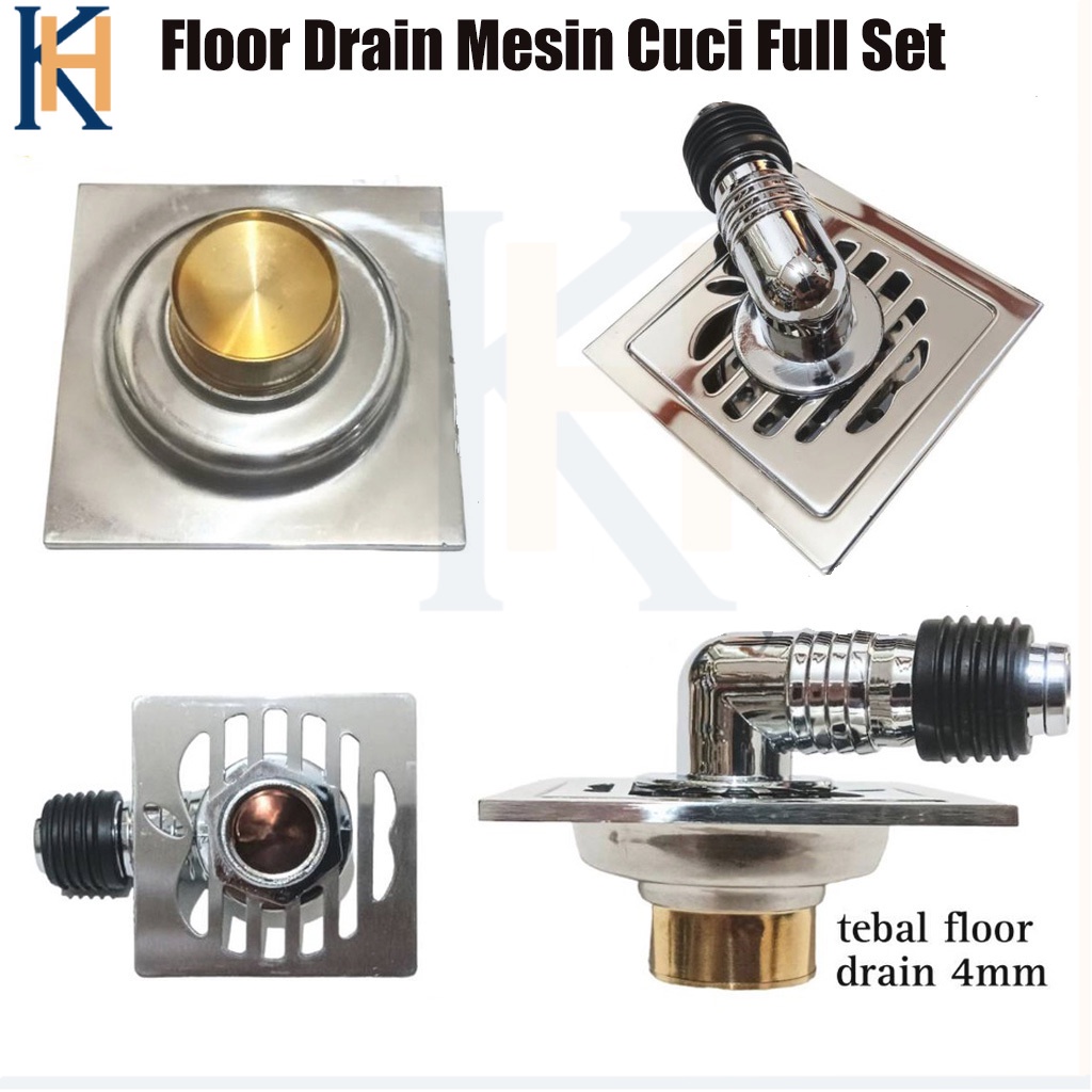 Set Floor Drain Stainless Mesin Cuci Sambungan Selang Pembuangan Mesin Cuci Floor Drain Mesin Cuci + Konektor Sambungan