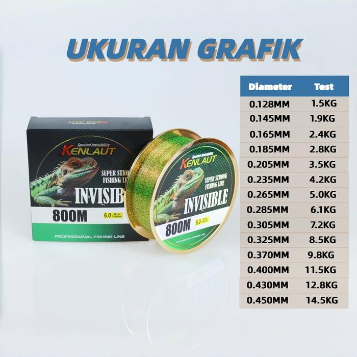 KENLAUT Senar Pancing 800m Super Nylon Titik Tak Terlihat Garis Speckle Line - 0.8# 0.145mm 1.9kg