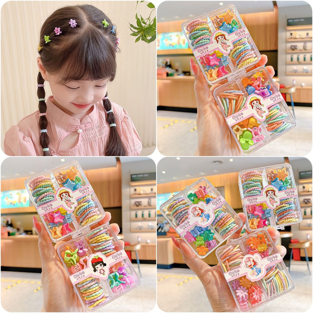 Ikat Rambut WBS SET IKAT RAMBUT JEPITAN MIX PASTEL ANAK PEREMPUAN WARNA WARNI AKSESORIS KOREAN STYLE KARET JEPIT BOX GIF