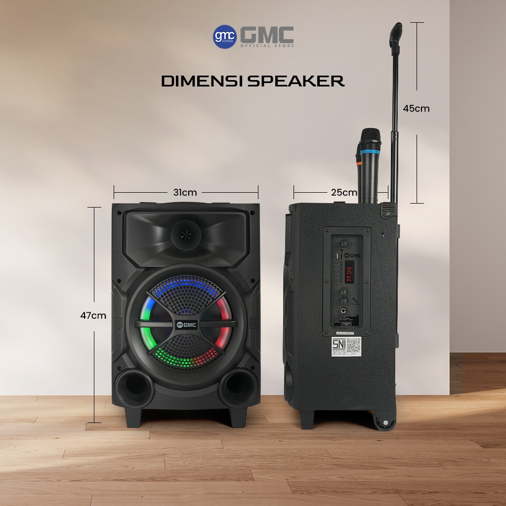 SPEAKER BLUETOOTH GMC 897Y PRO 8 10 12 15 18 INCH 150W SALON AKTIF MUSIC KARAOKE MIC 2 WIRELESS FULL BASS PORTABLE RADIO