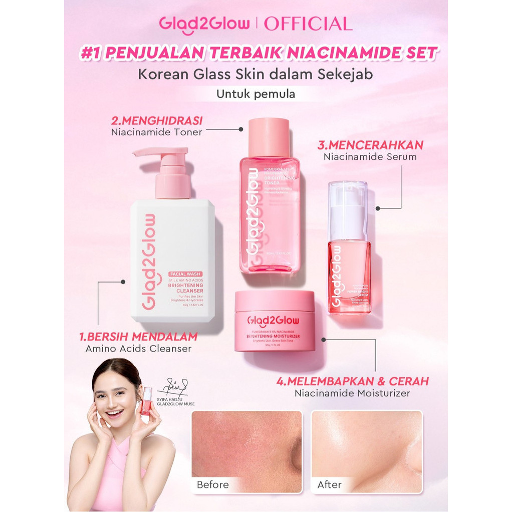 [KOL]Glad2Glow Cerah Glowing Bundle 4in1-Brightening Moisturizer+Serum+Cleanser+toner+Peeling solution+Retinol 10%Niacin