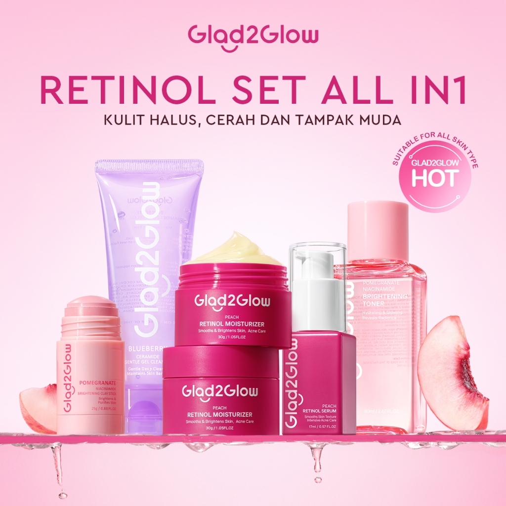 [100%ORI]GLAD2GLOW RETINOL SET ALL IN 1 bundle peach moisturizer skin barrier Retinoid Memudarkan Garis Halus Memudarkan