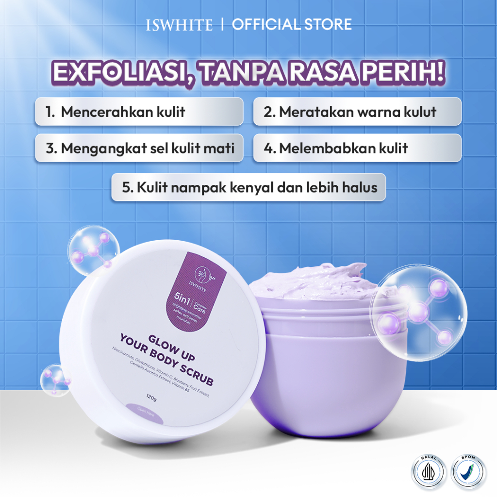 ISWHITE Body Scrub Whitening 120gr Lulur Mandi Pemutih Badan Eksfoliasi Glowing Mencerahkan BPOM TERLARIS