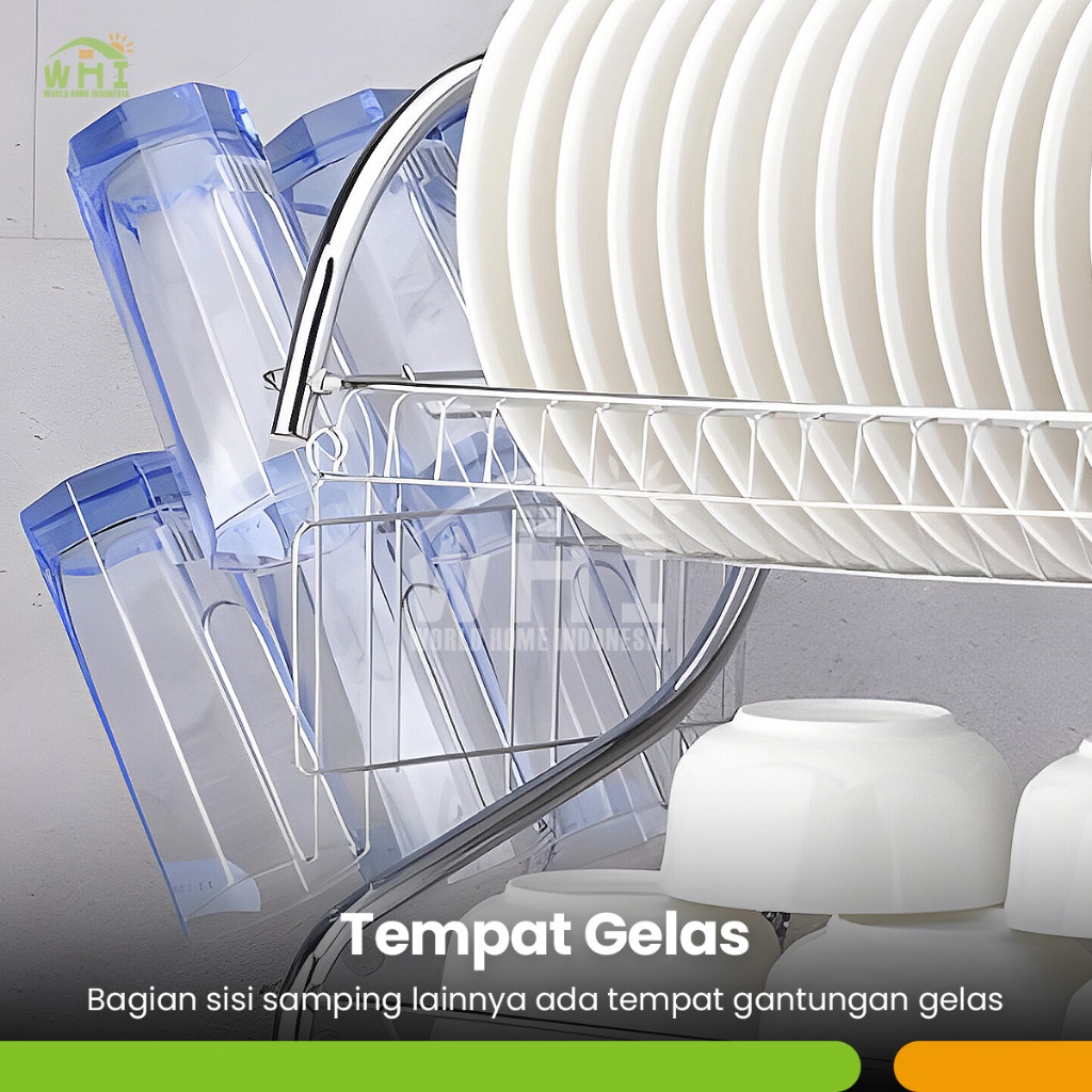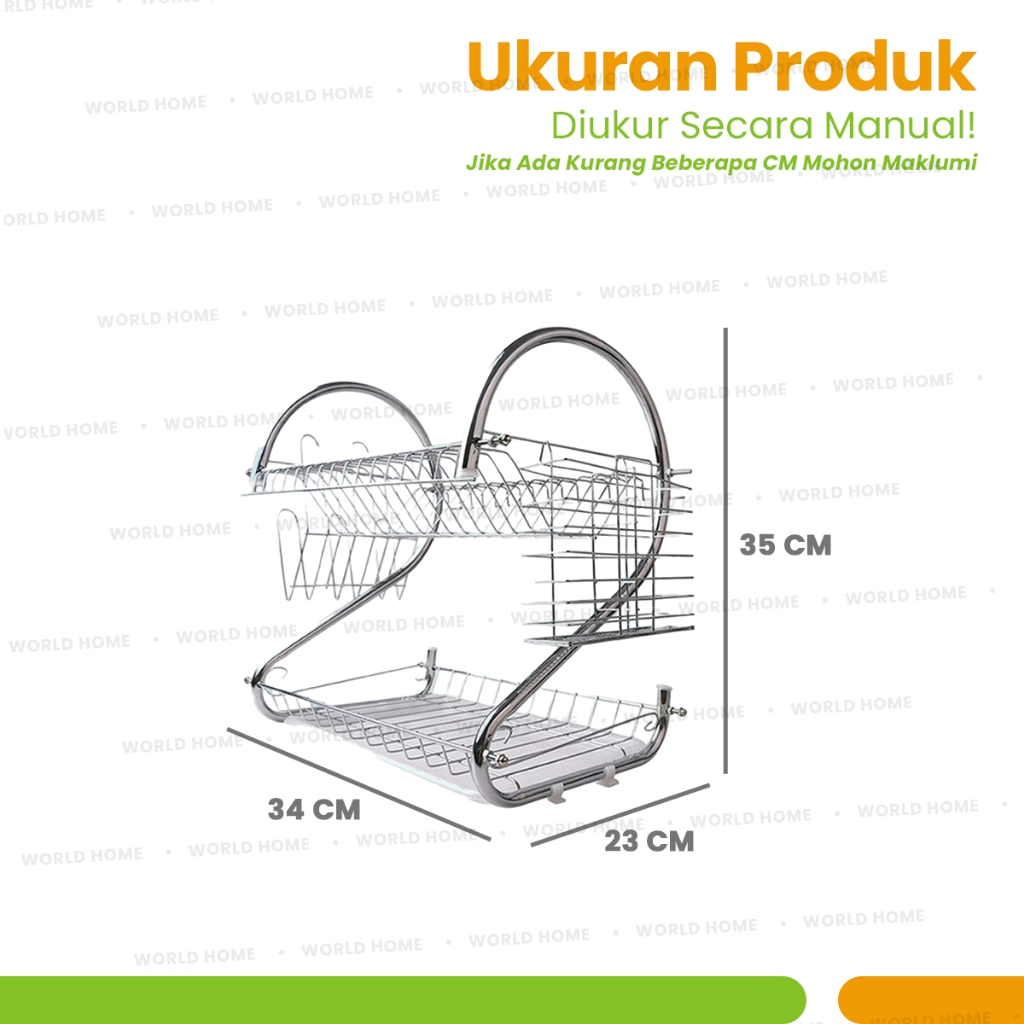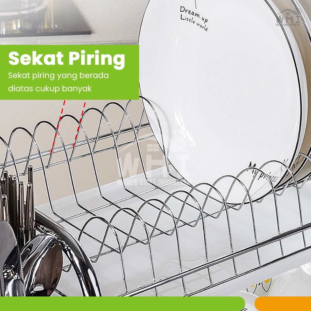 World Home Rak Piring Stainlees 2 Tingkat Rak Piring Minimalis Rak Dapur Stainless Steel Dish Rack