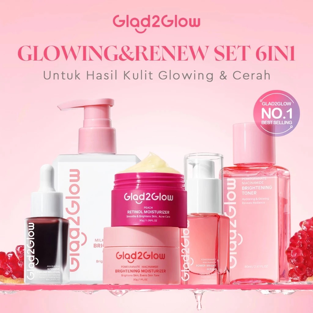 Glad2Glow Paket Glowing Set Retinol Bundle 6in1 - Glowing Set Lengkap with Peach Moisturizer