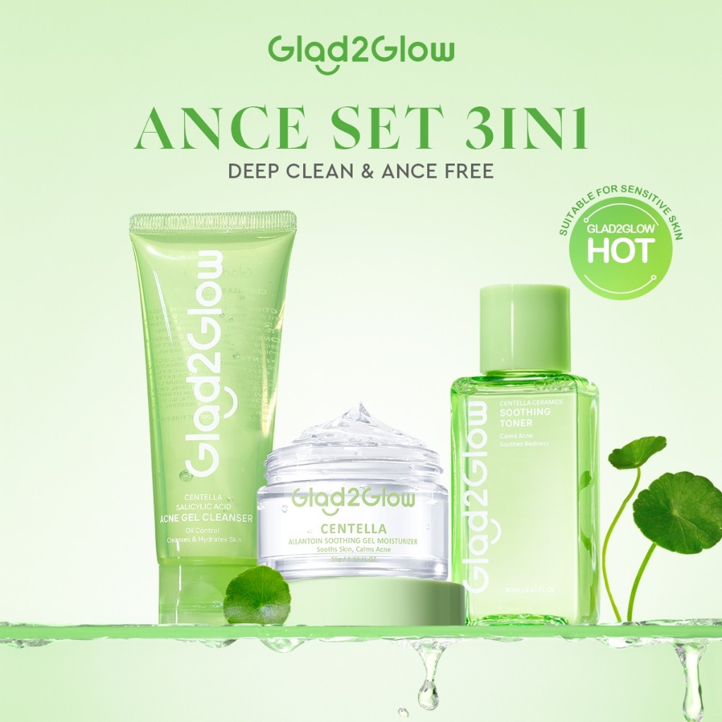 [ 100%ORI ]Glad2Glow Acne Care bundle all in 1 - 3/4/5 PCS Skincare Paket-Soothing toner+Centella Moisturizer+ Centella