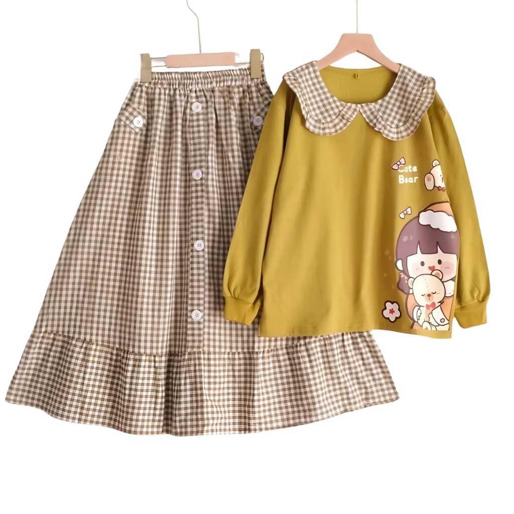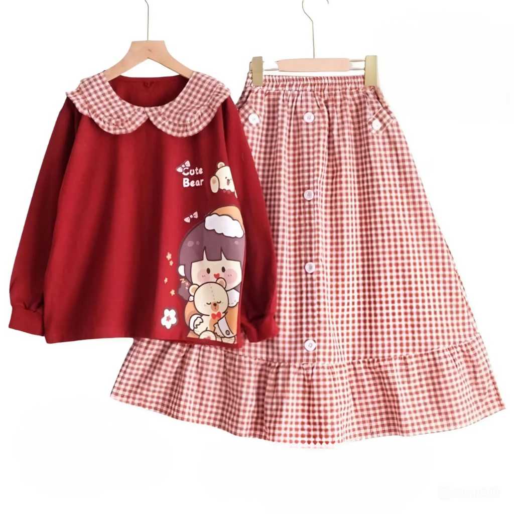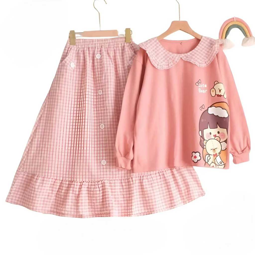 SETELAN ANAK PEREMPUAN APRIL KIDS KEKINIAN USIA 4 SAMPAI 12 TAHUN CRINKLE AIRFLOW KOMBINASI KATUN