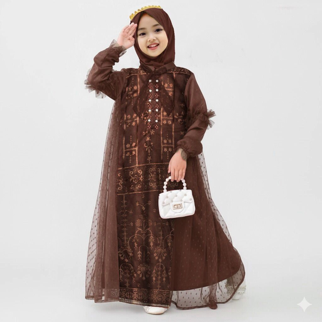 Baju gamis anak burgundy Angel 2-13thn || baju gamis pesta anak perempuan , baju gamis anak mahogany