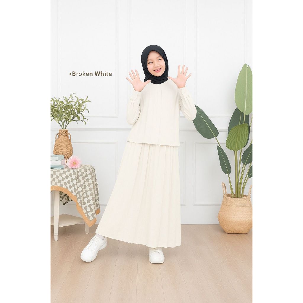 SETELAN MUSLIM ANAK PEREMPUAN HIJAB KEKINIAN 2 in 1 FRANCINE KIDS USIA 8-15 TAHUN BAHAN LINEN CRINKLE GAMIS ANAK TANGGUN