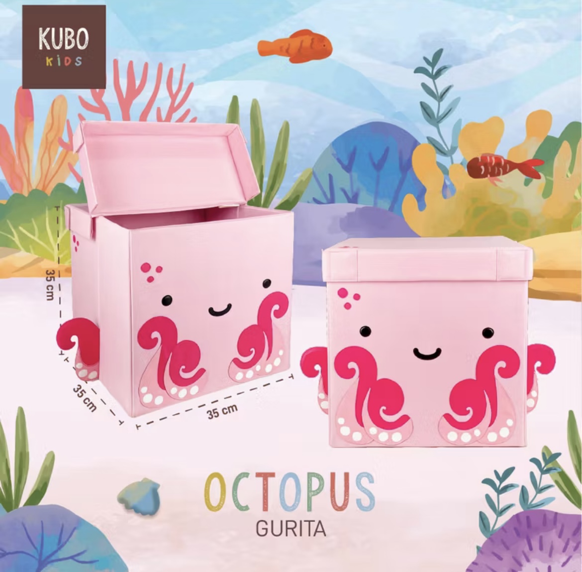 KUBO Kids Kotak Penyimpanan Mainan Anak Ukuran 35*35*35 cm - Ocean Series Karakter Gurita