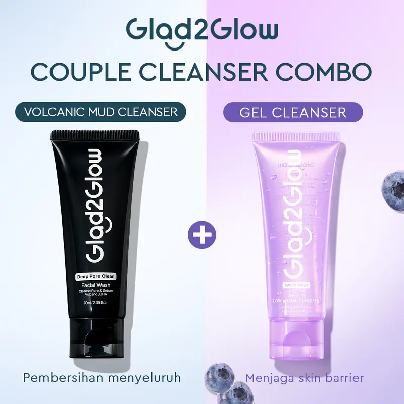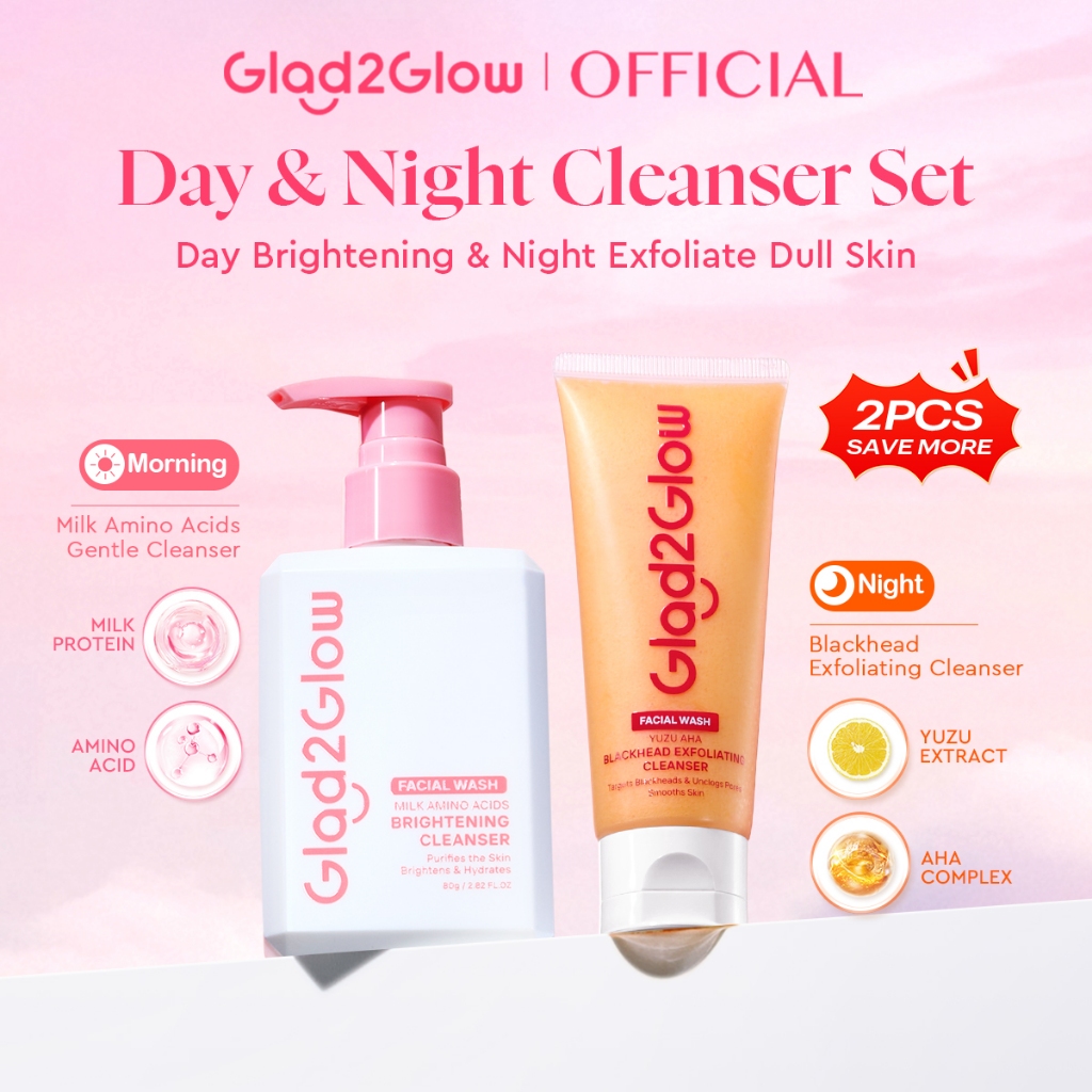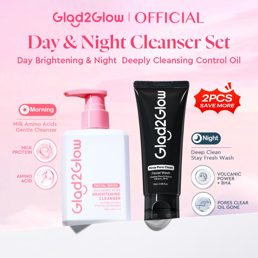 [NEW]Glad2Glow Day & Night Cleanser Set-Milk Amino Acid Gentle Cleanser+Volcanic Ash+BHA Deep Pore Clean Facial Cleanser