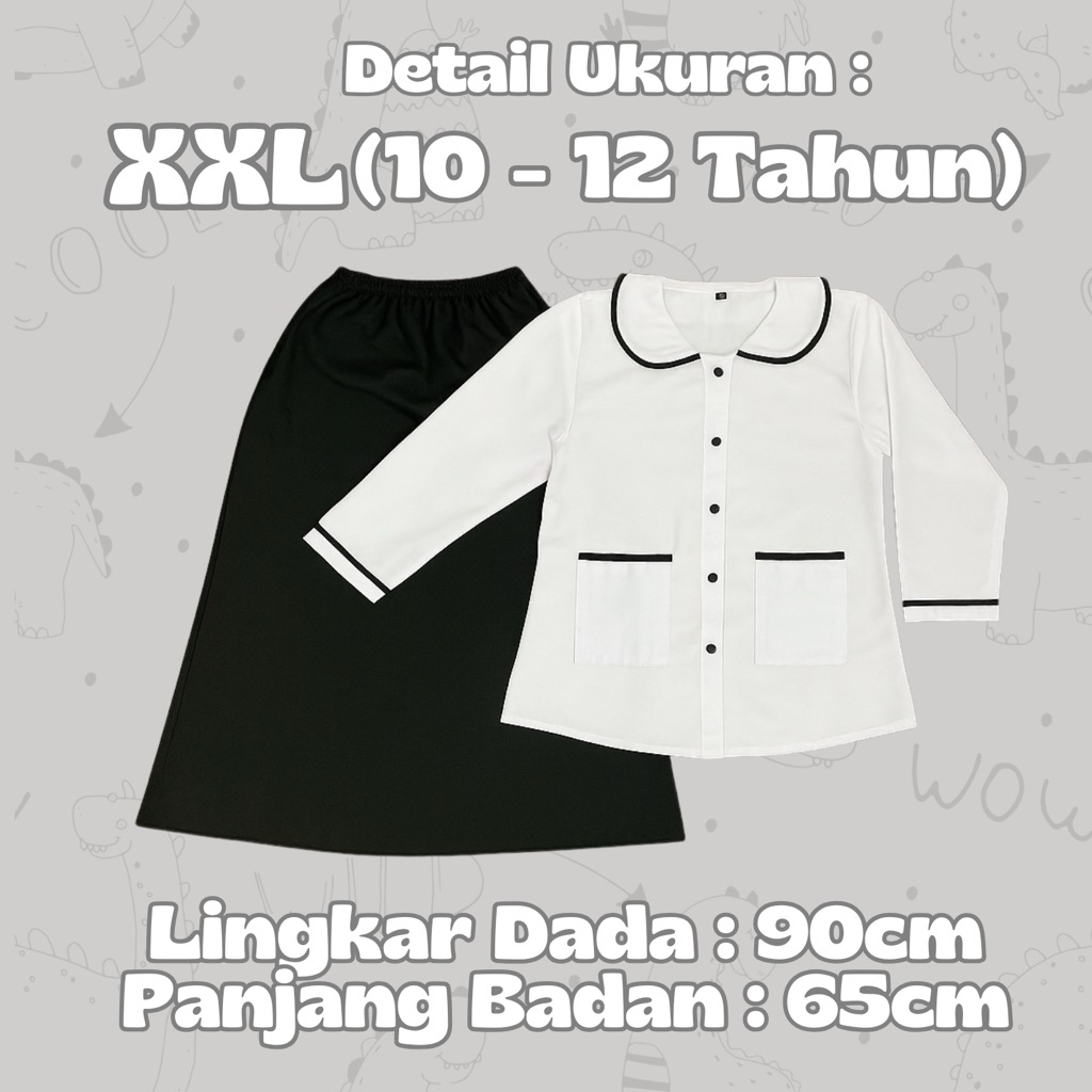 Setelan Baju Muslim Anak Putih Hitam Perempuan TPQ/Diniyyah