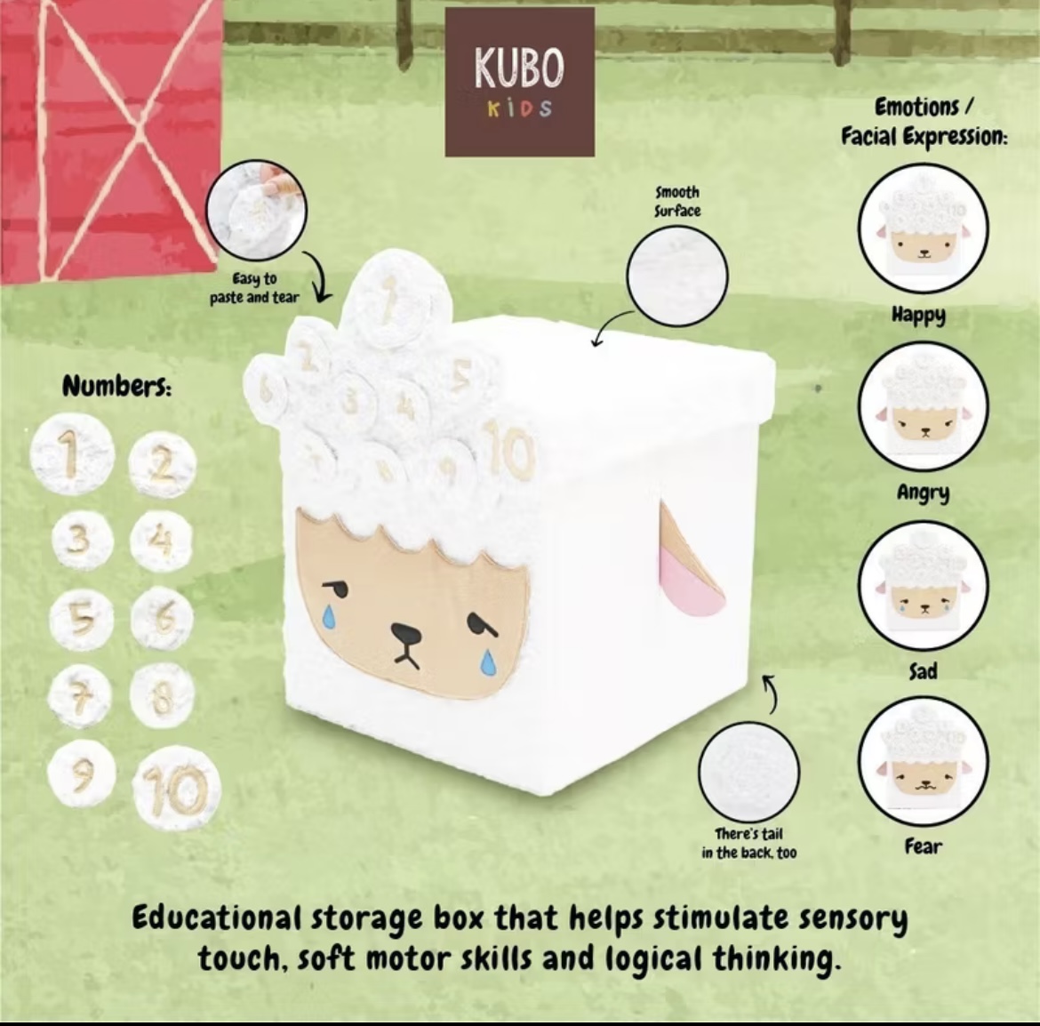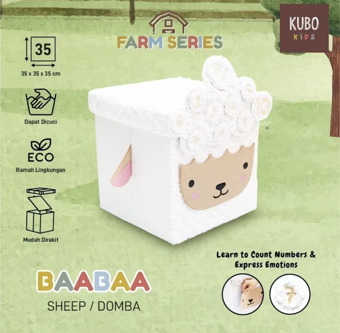 Promo Kubo Kids Kotak Penyimpanan Mainan Anak Ukuran 35*35*35 cm - Farm Series Karakter Domba/Sheep Kerem