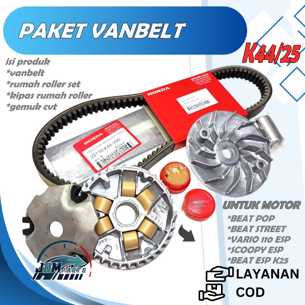 VANBELT PAKET CVT ONLY K44 + RUMAH ROLLER ASSY K44 + KIPAS K44 + GREASE / GEMUK HONDA BEAT POP STREET / BEAT ESP