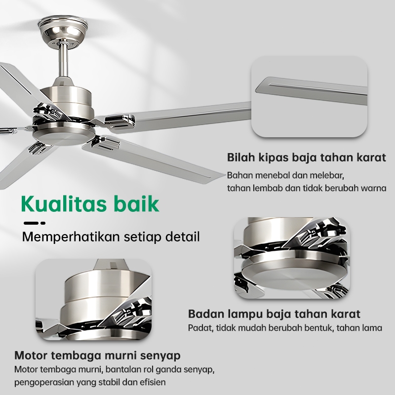GEOUS Kipas Angin Gantung Plafon 52inci Kipas langit-langit Baling Hias Nordik Dengan Remote Control Ceiling Fan R Makan