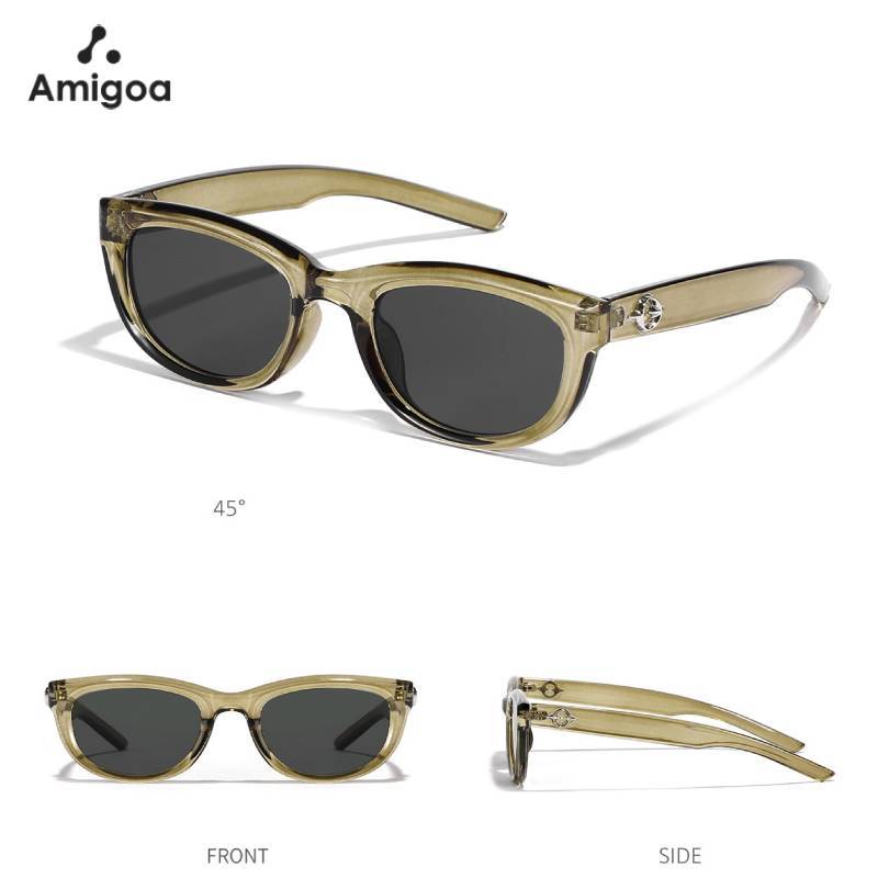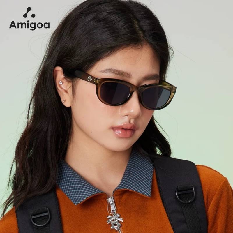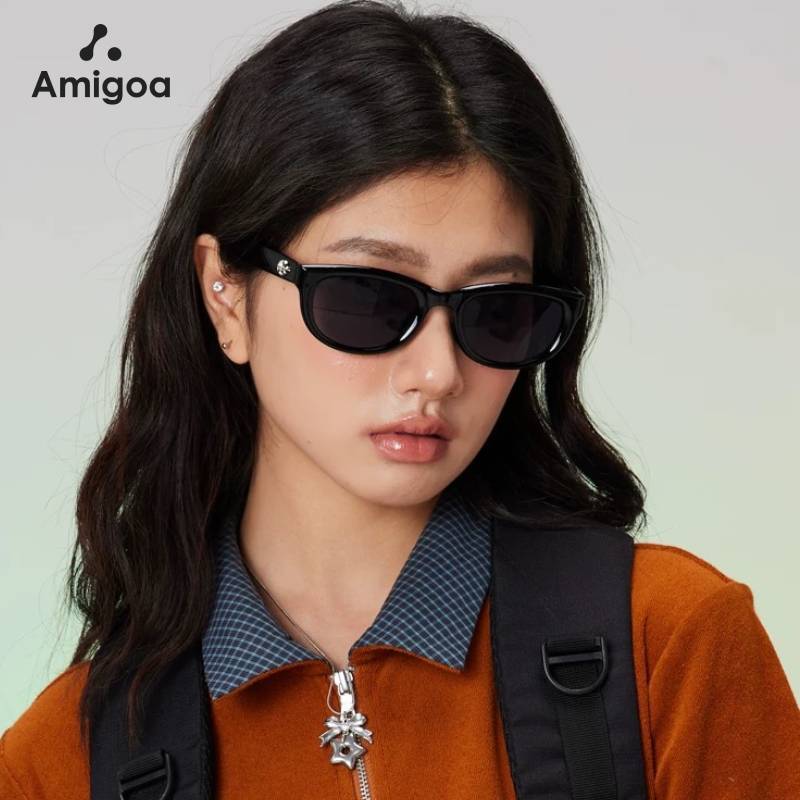 Ka Mata Wanita AMIGOA Kamata Hitam Cat Eye Retro Kece Premium Kamata Hitam Bingkai Kecil Kamata Outdoor Anti UV Dan Radi