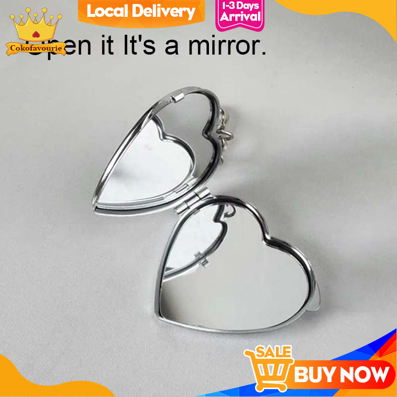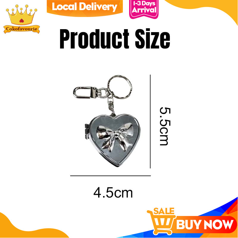 Gantungan Kunci dan Motor ✨ Gantungan Kunci Dengan Cermin Make-up Pita Hati Y2K Lucu Gantungan Tas Hiasan Bag Charm Ke