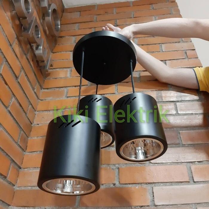 Kap Lampu Gantung Outbow Hitam 4 inch Bulat 3 in 1 Fitting E27 + Base Bulat Besi Bohlam - Hitam