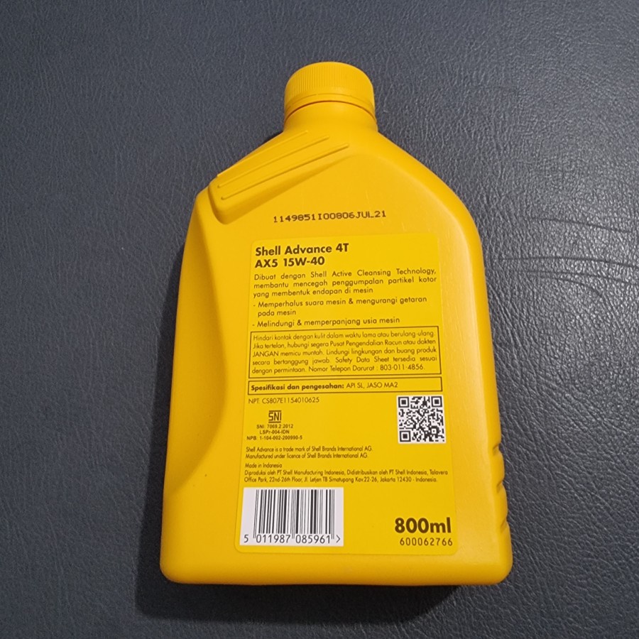 oli motor matic Shell Advance AX5 15W-40 Motor Bebek 4T Premium Mineral 0.8L 800ml