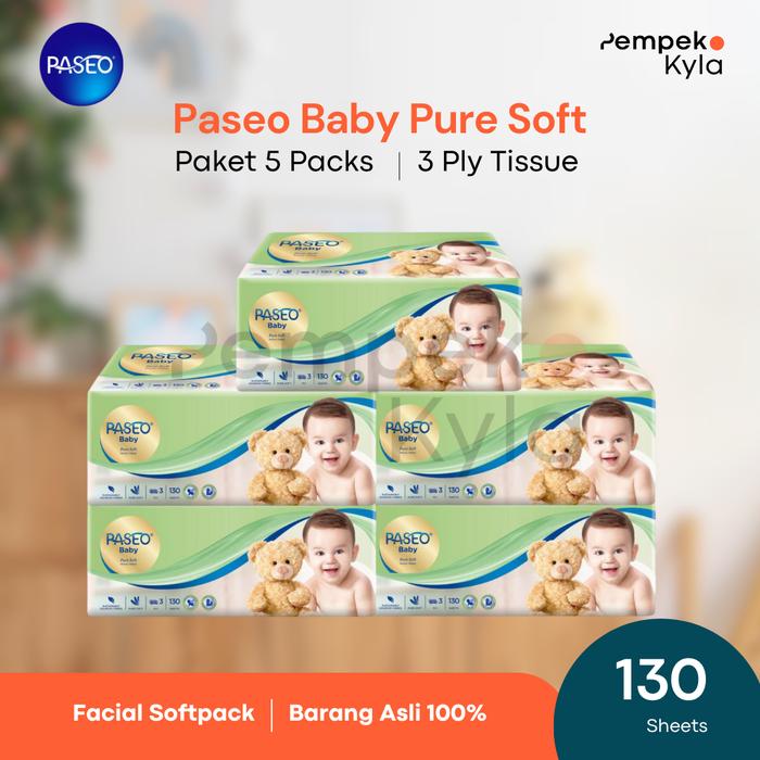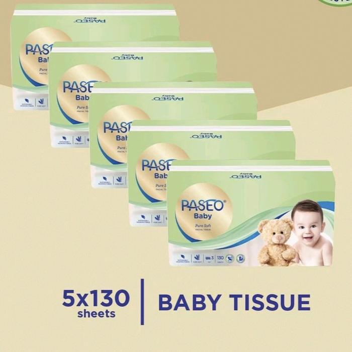 WAJIB PUNYA ! PAKET TISSUE PASEO BABY PURESOFT 130 SHEETS 3 PLY ISI 5 PACKS ORI