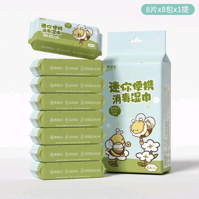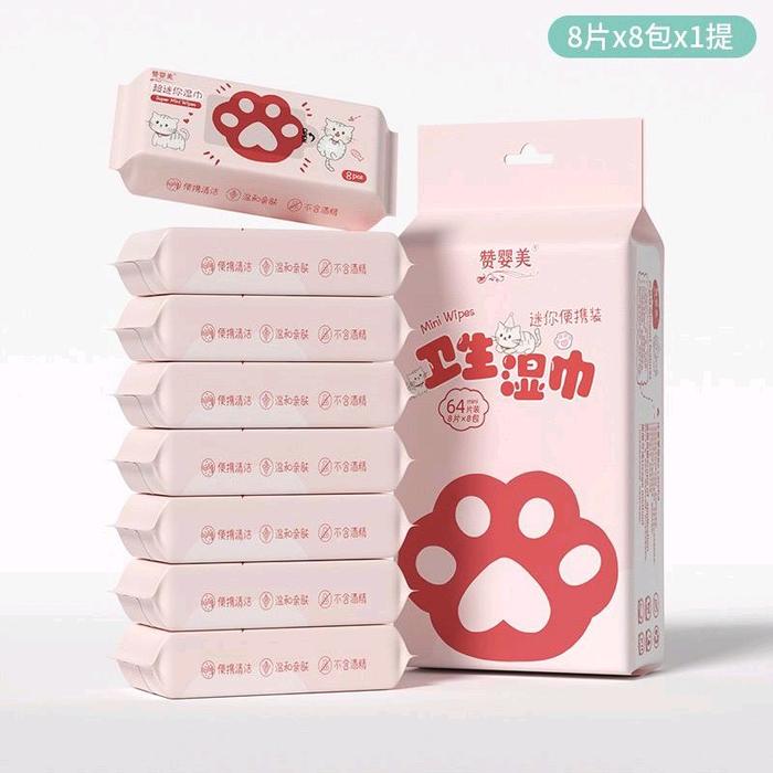 WAJIB PUNYA ! TISU BASAH MINI TRAVEL 8IN1/TISU BASAH MINI ISI 8 BEBAS ALKOHOL 24 BULAN - KUCING DASI ORI