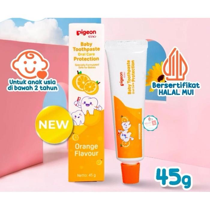 WAJIB PUNYA ! PIGEON BABY TOOTHPASTE ORANGE STRAWBERRY 45GR | PASTA GIGI ODOL ANAK BAYI (0-2 TAHUN) - ORANGE ORI