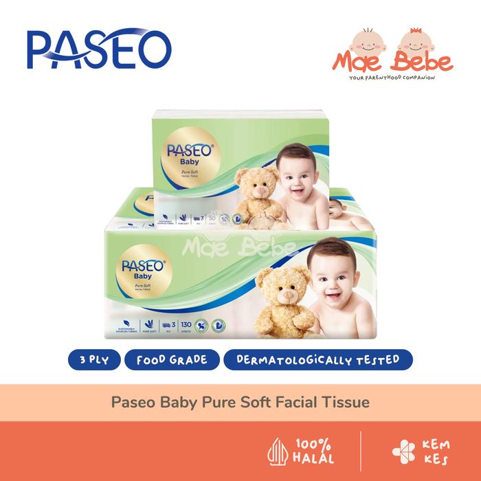 WAJIB PUNYA ! PASEO BABY PURE SOFT FACIAL TISSUE 3 PLY TISU KERING LEMBUT HYPOALLERGENIC FOOD GRADE - 50 SHEETS ORI