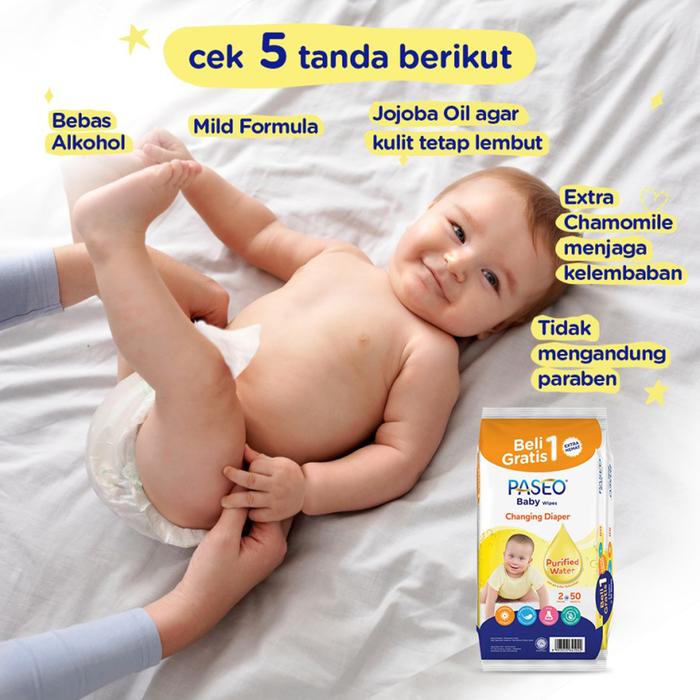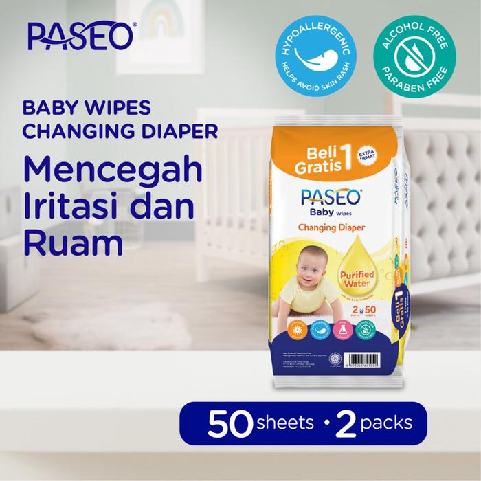 WAJIB PUNYA ! [ BUY 1 GET 1 ]PASEO TISSUE TISSU TISU BASAH BABY WIPES ISI 2X50 SHEET - PINK ORI