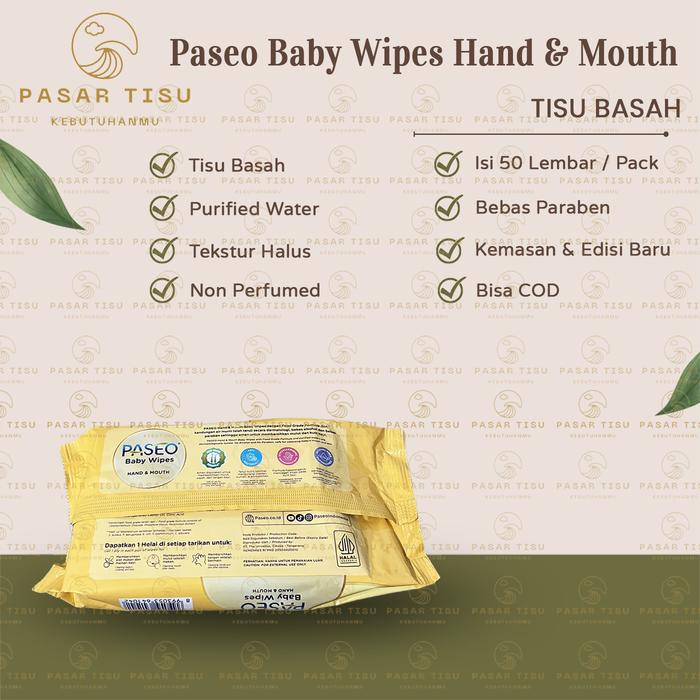 WAJIB PUNYA ! TISSUE PASEO BABY WET WIPES HAND AND MOUTH 50 SHEET / TISU BASAH BAYI PARABEN FREE ORI
