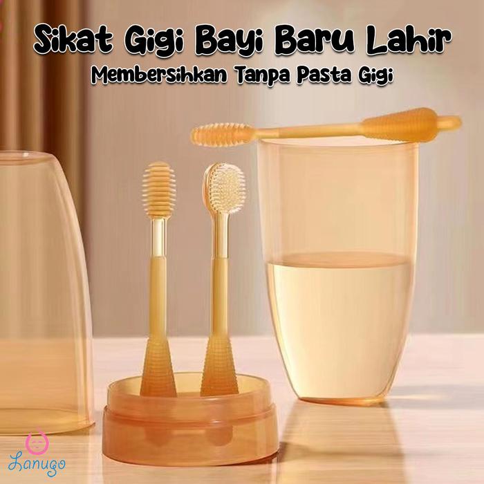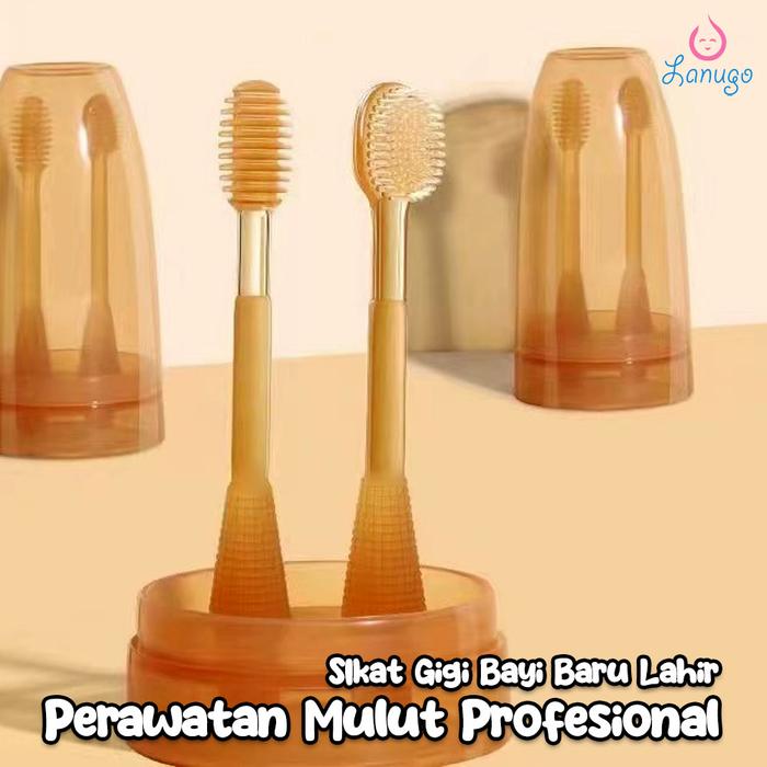 WAJIB PUNYA ! SIKAT LIDAH BAYI SILIKON LEMBUT SIKAT GIGI BAYI PEMBERSIH LIDAH BAYI 2 IN 1 - SIKAT COKELAT 2 IN 1 ORI