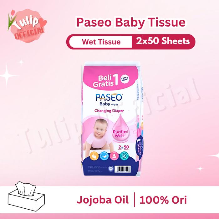 WAJIB PUNYA ! TISU TISSUE BASAH PASEO | BUY 1 GET 1 BABY WIPES 2 X 50 SHEETS - JOJOBA ORI