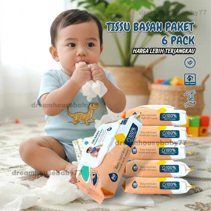WAJIB PUNYA ! PAKET TISU BASAH BAYI 6 BUNGKUS / TISSUE BASAH BAYI 6 PACK NON PARFUM DAN ALKOHOL WIPES ORI