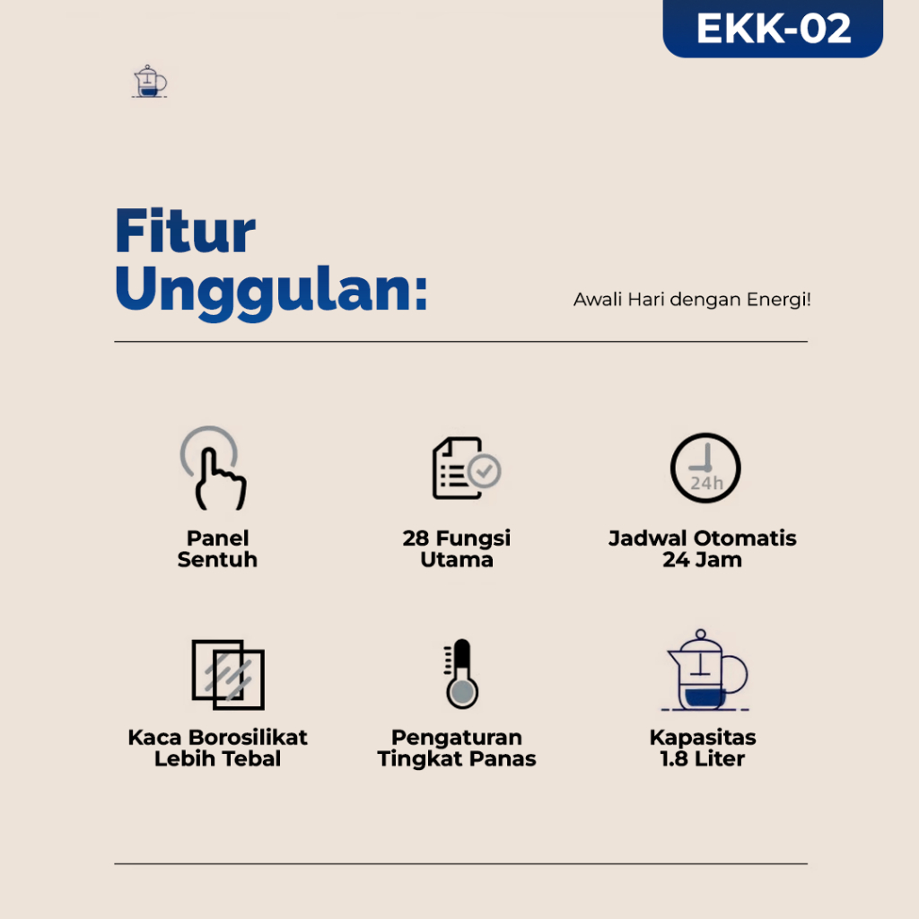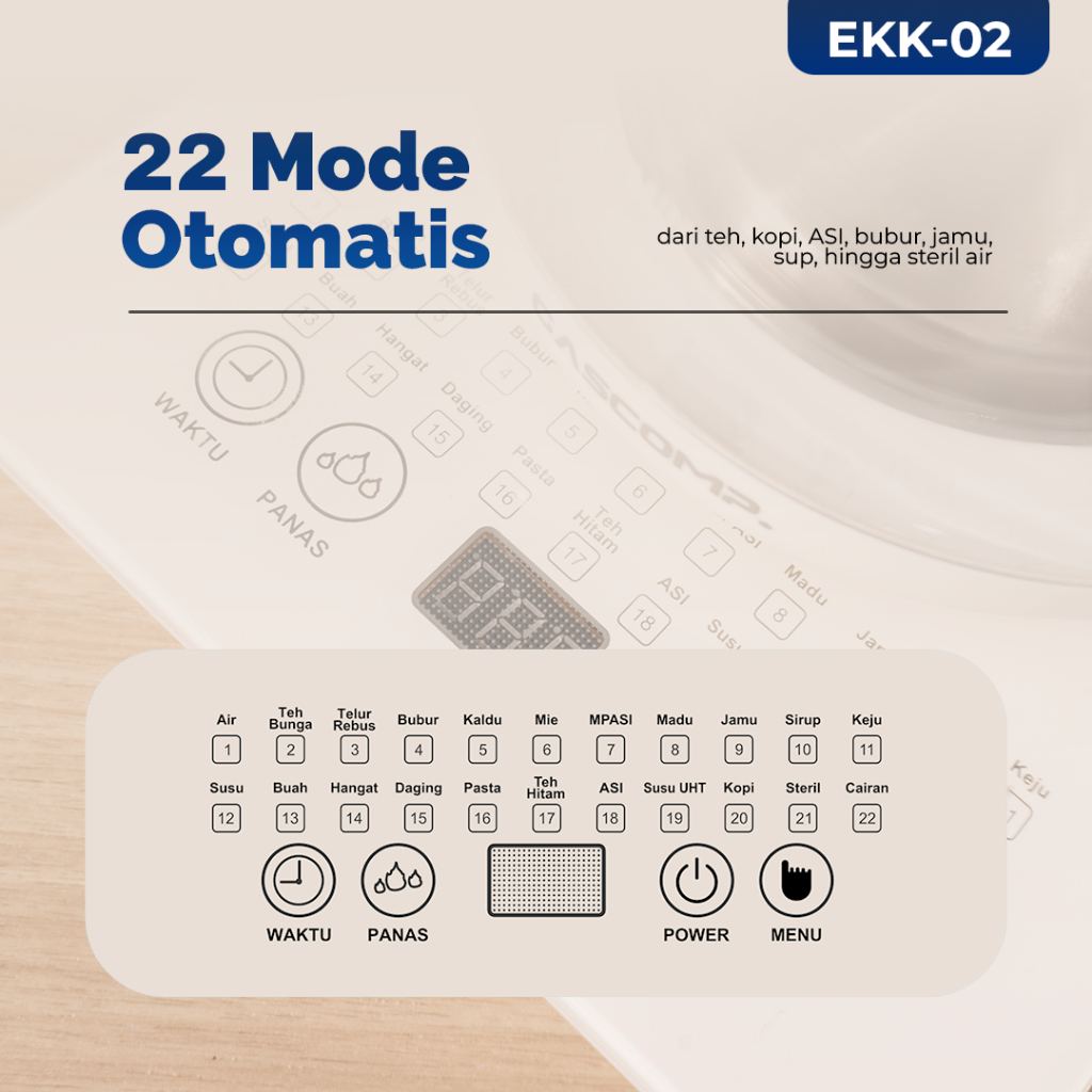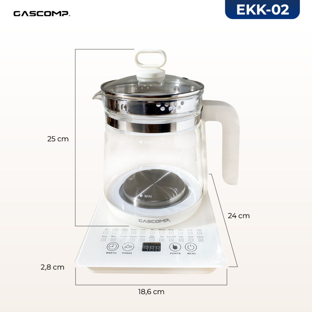 GASCOMP Electric Kettle 1,8L | Teko Listrik Serbaa Kaca Borosilikat | Kontrol Sentuh Digital , Auto-Off Safety, Multi Fu