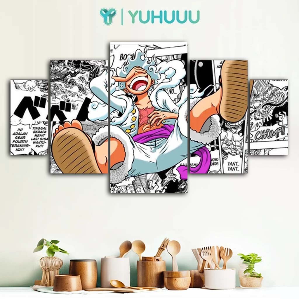 Pajangan Bingkai Foto Hiasan dinding ONE PIECE LUFFY 5pcs Poster Kayu Wall Decor