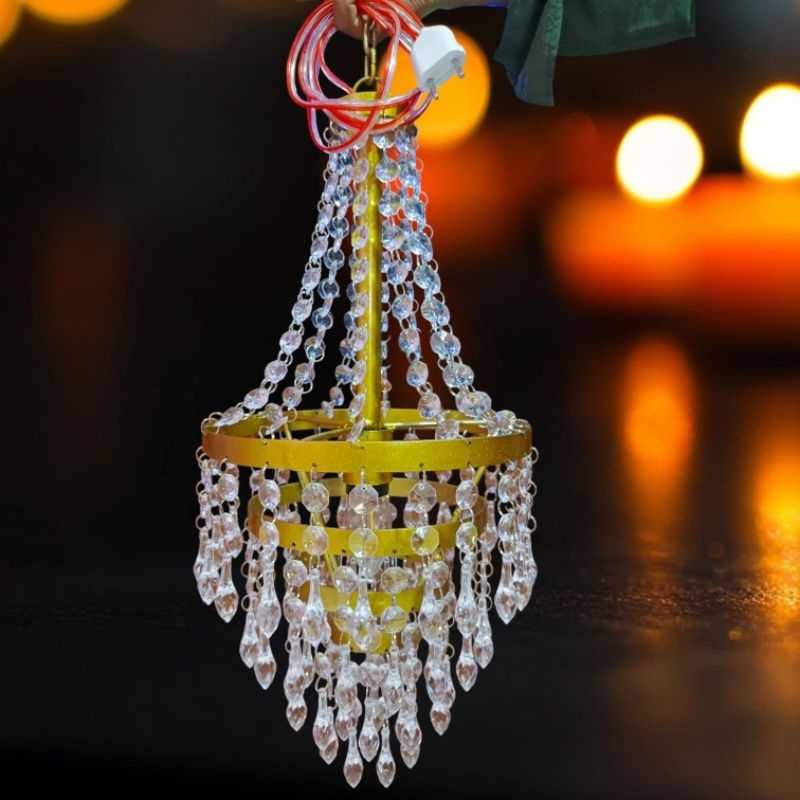LAMPU HIAS GANTUNG KRISTAL TERLARIS/UKURAN 21×45cm /CCOK UNTUK DEKORASI WEDDING ATAU PLAPON RUMAH MASJID GEDUNG RESTORAN