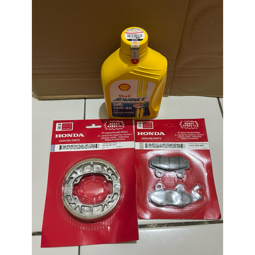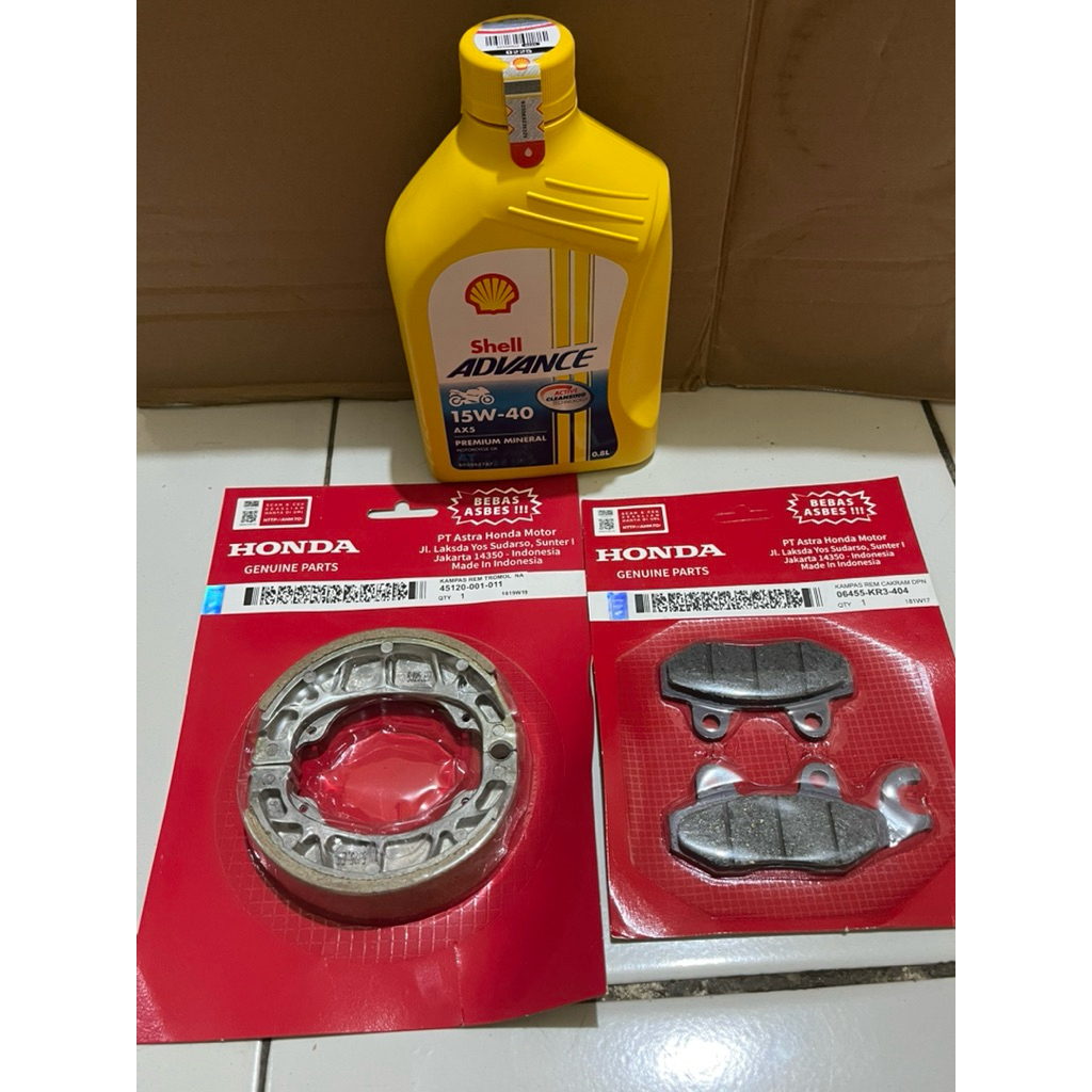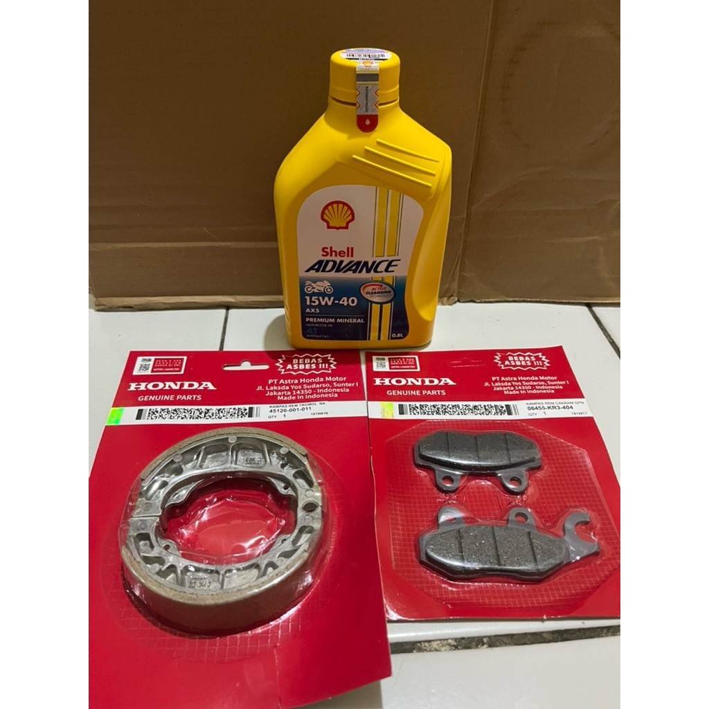 Kampas Rem depan + BELAKANG OLI SHELL ADVANCE AX5 0,8 MOTOR SUPRA KARISMA SUPRA X 125 SUPRA FIT NEW LEGENDA
